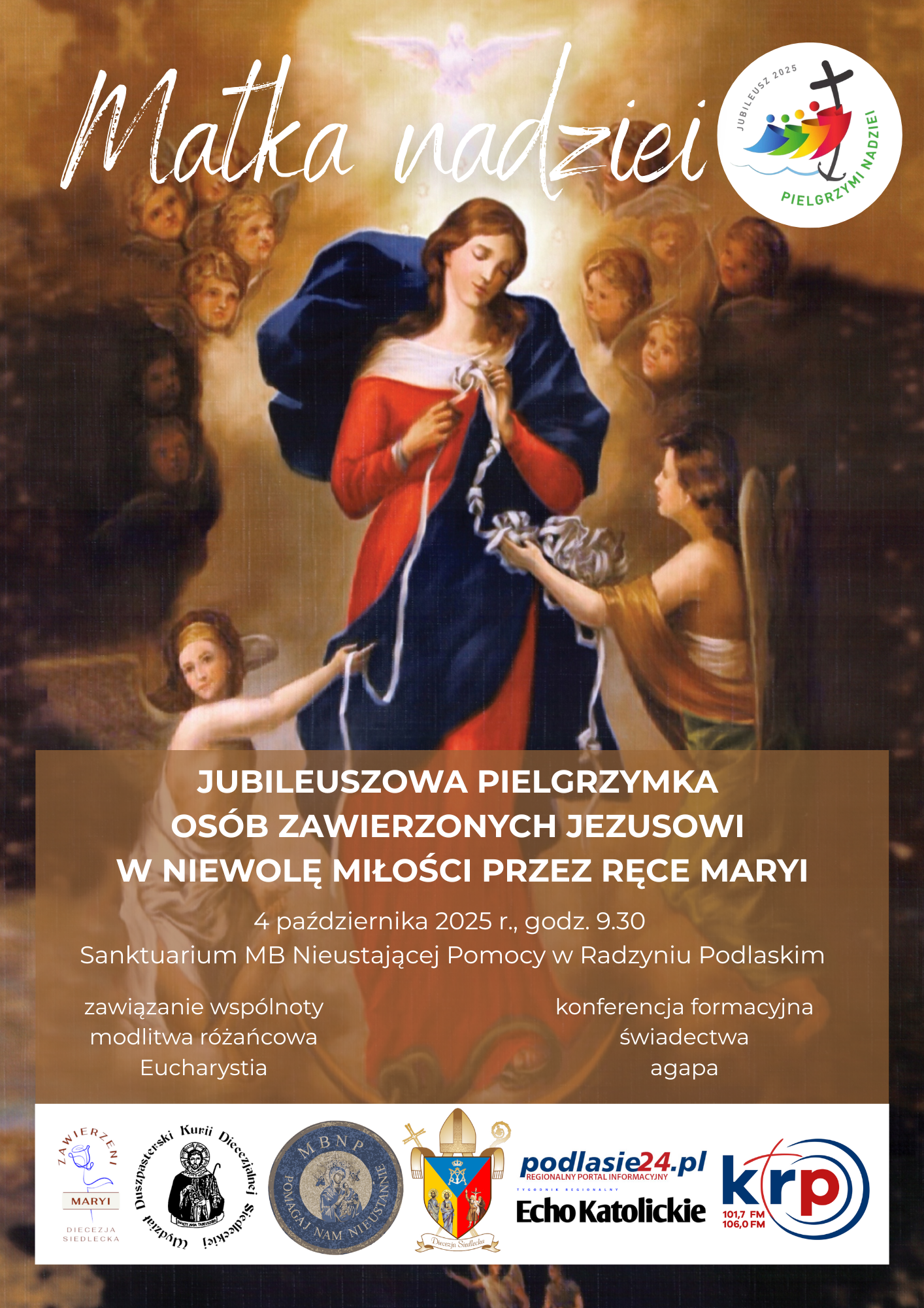 Serdecznie zapraszamy do udziału w Jubileuszowej Pielgrzymce Osób Zawierzonych do Sanktuarium Matki Boskiej Nieustającej Pomocy w Radzyniu Podlaskim.